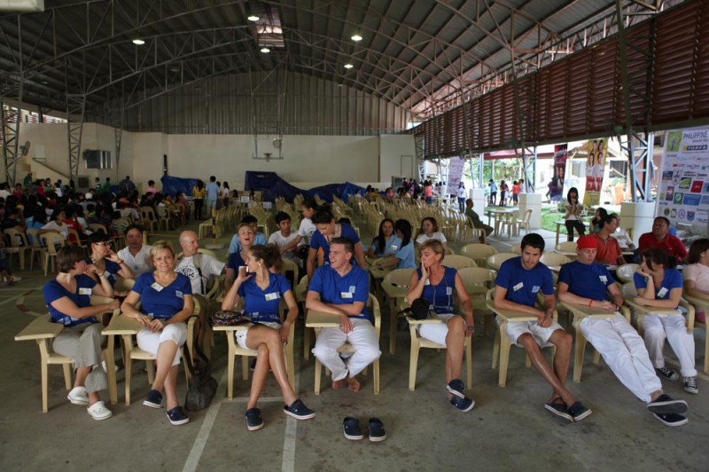 Eén team vertrekt naar Santo Tomas, waar we in de gietende regen aankomen op onze verblijfplaats. De regen deert ons al snel niet meer; daarvoor zorgt het warm onthaal en de gastvrijheid van de Filippijnse vrijwilligers.