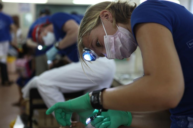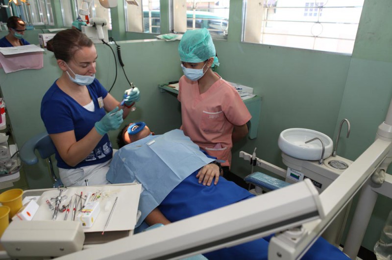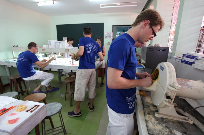 De plaatselijke gymzaal wordt omgetoverd tot onze werkplek: een extractie (Ibot) gedeelte waar ongeveer 15 tandartsen tegelijk tanden zullen trekken, een plaats met 6 bedjes om esthetische vullingen te leggen (Pasta), enkele bedjes om te reinigen (Limpio), een plaats waar de reeds voorbereidde protheses worden afgewerkt en uiteraard ook een onthaal waar de screening en preventie werkt.