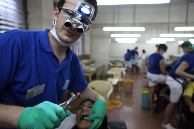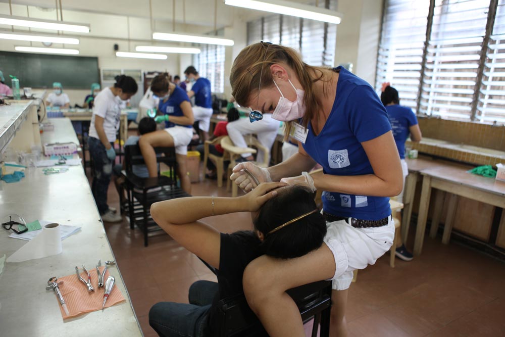 Na een rustdag zullen we drie dagen in de universiteit van Davao werken. Daarbij worden we intensief ondersteund door de Filippijnse studenten. We krijgen enorm veel hulp van hen en voelen ons heel welkom in hun school. Ook hier vinden we de verschillende onderdelen van de tandheelkunde terug : preventie, profylaxe, vullingen, extracties.